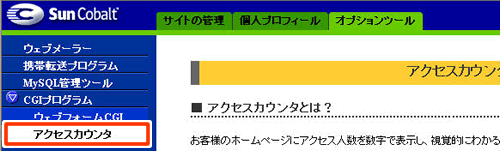 左メニュー[ CGIプログラム ]にある[ アクセスカウンタ ]を選択します。