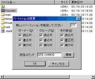 そのディレクトリのパーミッション(アクセス権限)を「777」(フルアクセス)と設定します。