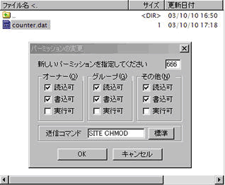 そのファイルのパーミッションを「666」(読み込み・書き込みのみ可)とします。