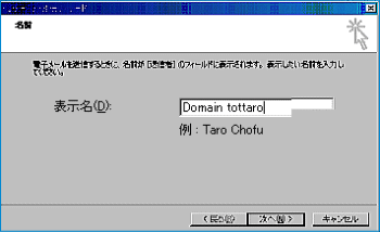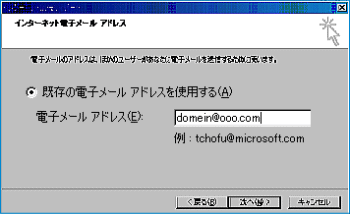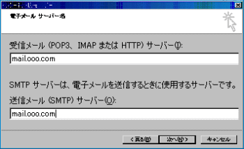 ※電子メールエイリアスで「info」などを設定した方はCの入力ではそのまま、info@ooo.comと入力しここでのアカウント名にはユーザ名を入力して下さい。 |